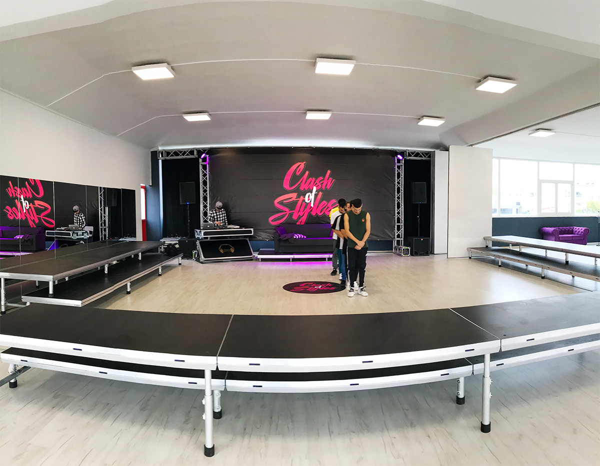 Το stage μπορεί να τοποθετηθεί σε οποιονδήποτε εσωτερικό ή εξωτερικό χώρο, ακόμα και κάτω από την τέντα. Είναι απολύτως σταθερό και μπορεί να έχει την επένδυση της αρεσκείας σας στη βάση του αλλά και περιμετρικά (μοκέτα, ξύλο κλπ).